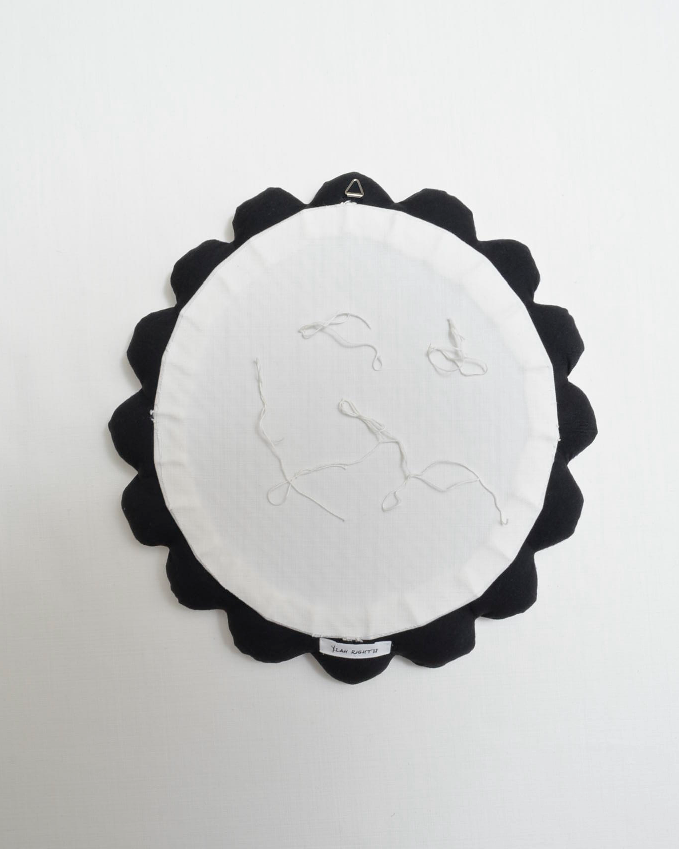 額縁や小さなモチーフとして立体化することで、布が本来持つ輪郭と記憶を新しいかたちへと再構成しています。
