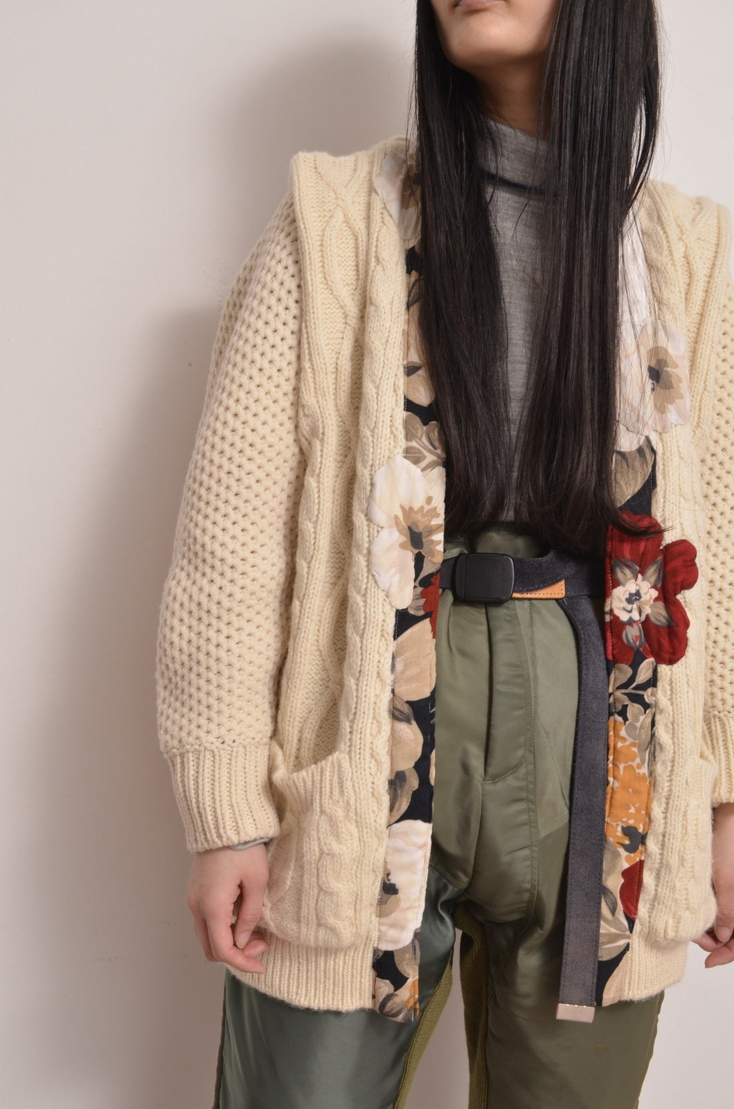 usedニットベストの前中心をカットし、前たてをつけたカーディガン。