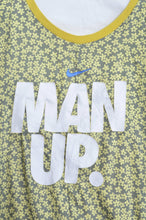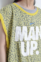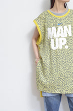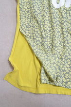 used Tシャツの前身頃をused花柄スカートにスイッチして、もともとプリントされていた柄を再度前身頃に配置したロングTシャツ。