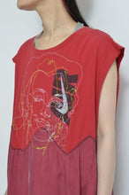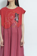 当初usedスリップで仕立てていたスカート部分をキュプラツイル地に置き換え、used Tシャツと併せたワンピース。