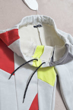 コットン/ナイロンのしっかりしたコーデュラ裏毛とusedスウェットで切り替えたパンツ。