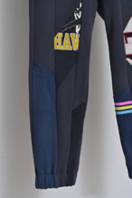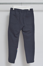 コットン/ナイロンのしっかりしたコーデュラ裏毛とusedスウェットで切り替えたパンツ。
