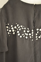 "fab-graph"(ファブグラフ)というYR!!独自の手法により、used花柄スカートを文字に切り抜き、プリントするかのように手縫い付けしたグラフィック。