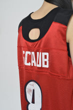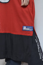 もともとのフットボールSHのVネック部分を活かした衿ぐりや、かなりビッグサイズをセレクトすることで大きな面積の大胆なカッティングが目を引きます。