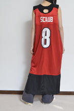 usedフットボールSHを解体しオリジナルパターンで仕立てたフェミンンなラインのワンピース。