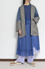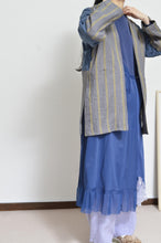 落ち着いた印象のリネンストライプ生地に、絶妙なカラーリングのused Tを後ろ身頃と上袖に配置しました。