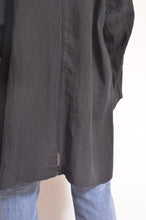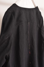 ディティールも見応えありで、前たてにusedスカーフを使用し、共布くるみドームボタン+ループで前開きを作っています。袖下にスリットが入り同じく共布くるみドームボタン+ループで閉めてもよし、開けてもよしです。