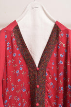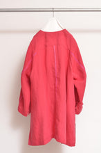 ディティールも見応えありで、前たてにusedスカーフを使用し、共布くるみドームボタン+ループで前開きを作っています。袖下にスリットが入り同じく共布くるみドームボタン+ループで閉めてもよし、開けてもよしです。