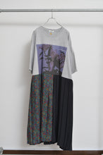 フォトグラファー東海林広太の今シーズンのイメージに合わせてセレクトされた「YURI」をインクジェットプリントしたused TにusedプリーツSKをあわせたワンピース。