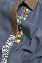 まっすぐに伸びた前たてとトレンチコートのような上衿にはused花柄ワンピースを解体したパーツを使用。