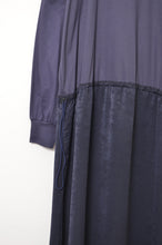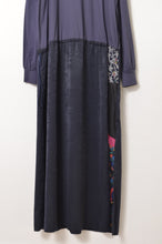 60/1コットンスムースのL/S Tにベルベットライクなスウェーディサテンを切り替えたロングワンピース。