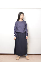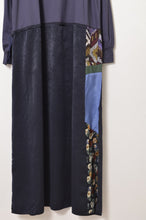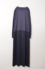 60/1コットンスムースのL/S Tにベルベットライクなスウェーディサテンを切り替えたロングワンピース。