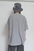 used T の前身頃にスマイリーフェイスにくり抜き、裏から円形のコーデュラ天竺をパッチ。