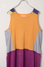 usedスポーツタンクトップをメインに、usedアイテムで切り替えを入れ、スカートはベルベットライクなスウェーディサテン使用したロングOP。