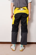モーターサイクルパンツを使用し、その構造を残しながらスラックスがフュージョンしていくように仕立てたアイテム。