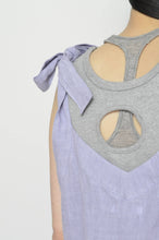 Vネックから延長した肩紐を結んで着るタンクトップ(ロングバージョン)。