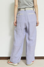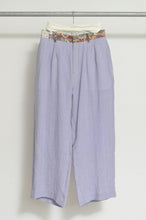 涼し気なリネン素材をメインに、ベルトや玉縁布などポイントでusedフローラルOPやペイズリースカーフを使用。
