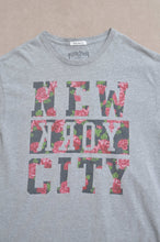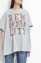 ベースのused Tシャツをテクニカルにカットし、身幅を広げて、もう1枚のused Tシャツを後ろ身頃ヨークしたにはめ込んだワイドTシャツ。