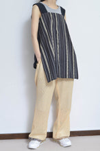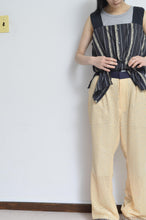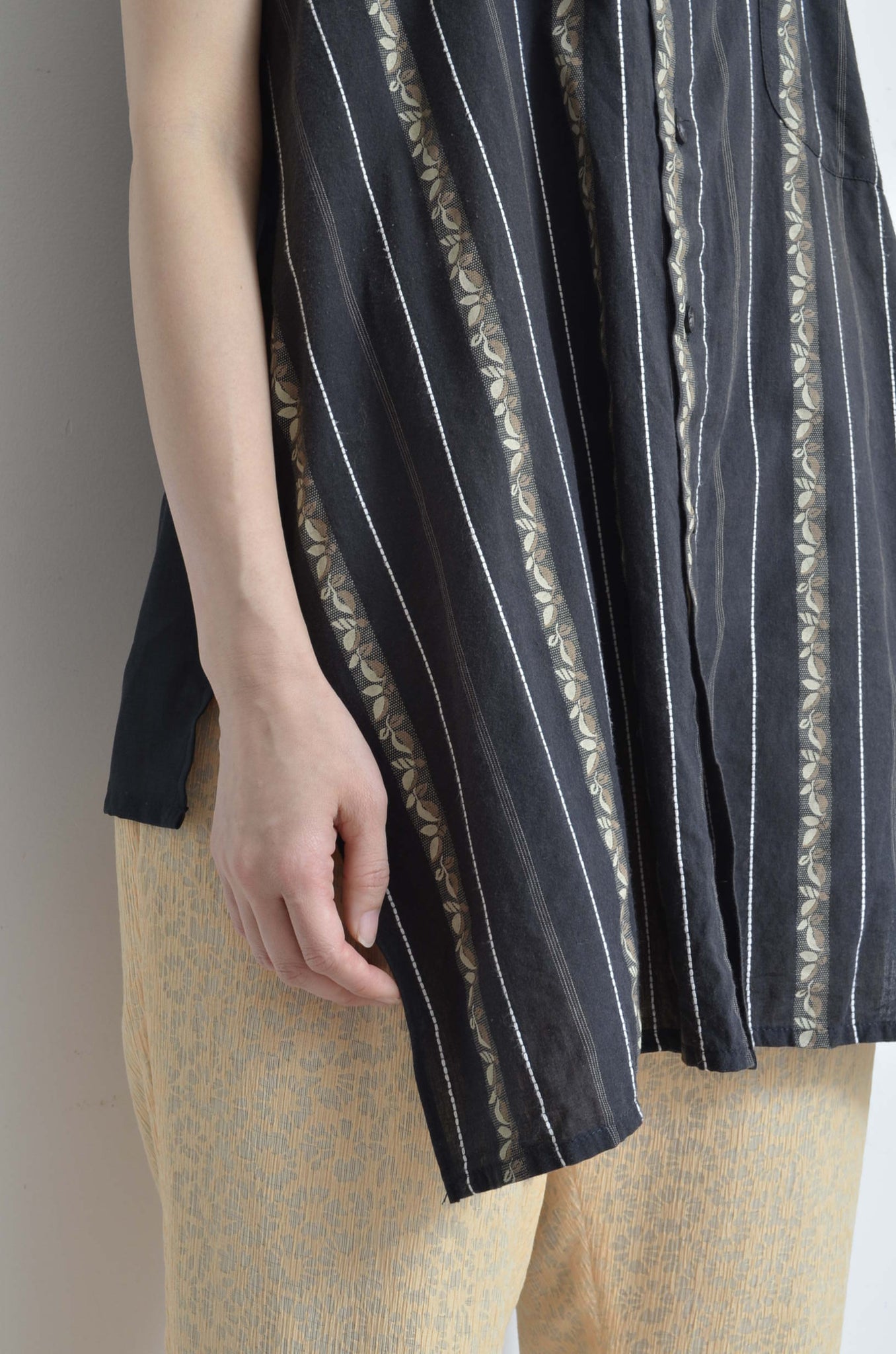 usedシャツの胸ポケットしたあたりからカットして、前開きもそのまま残して仕立てているので、前の下の方のボタンを開けて前や後ろに結んで着るのもおすすめです。