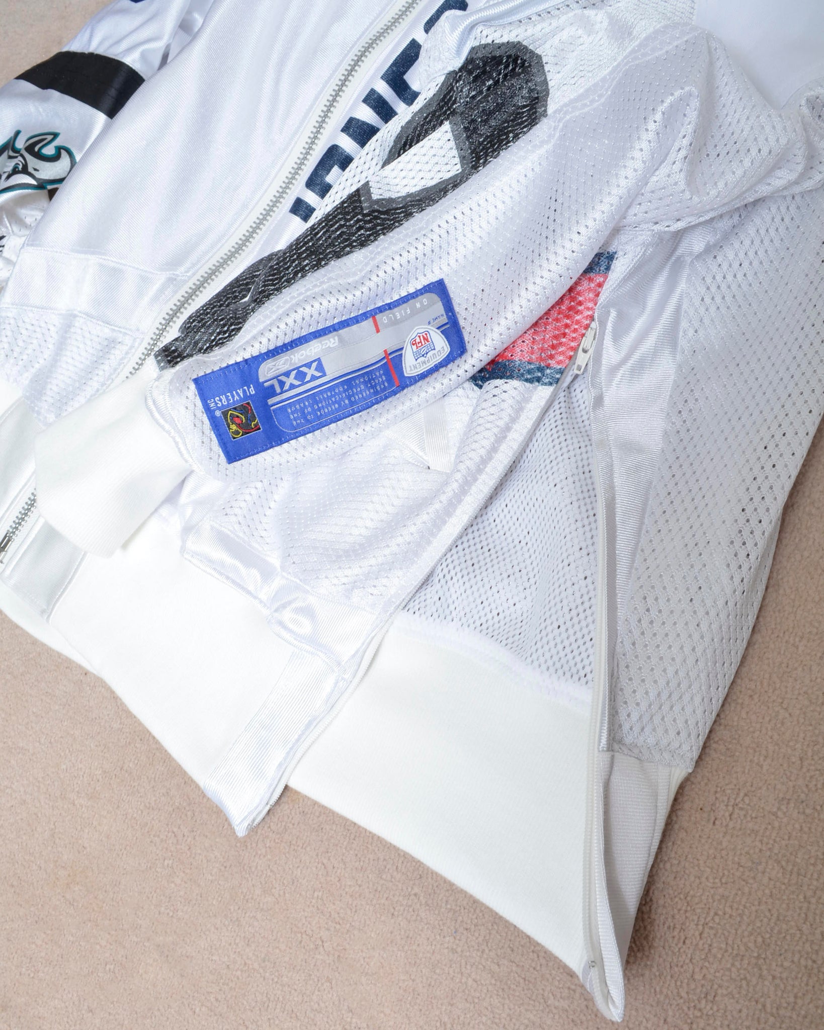 背番号やチームロゴといったグラフィックは一着ごとに異なり、それぞれに違った表情を見せます。YEAH RIGHT!!独自のバランスでカットアップし、スポーツウェアならではの素材をブルゾンに仕立てています。