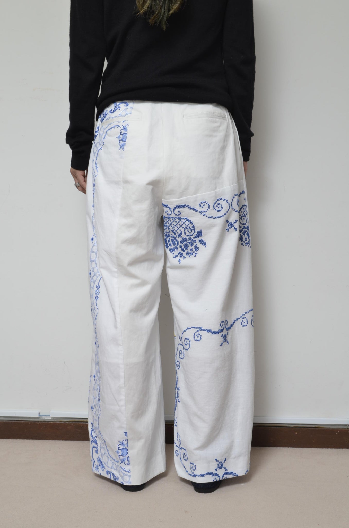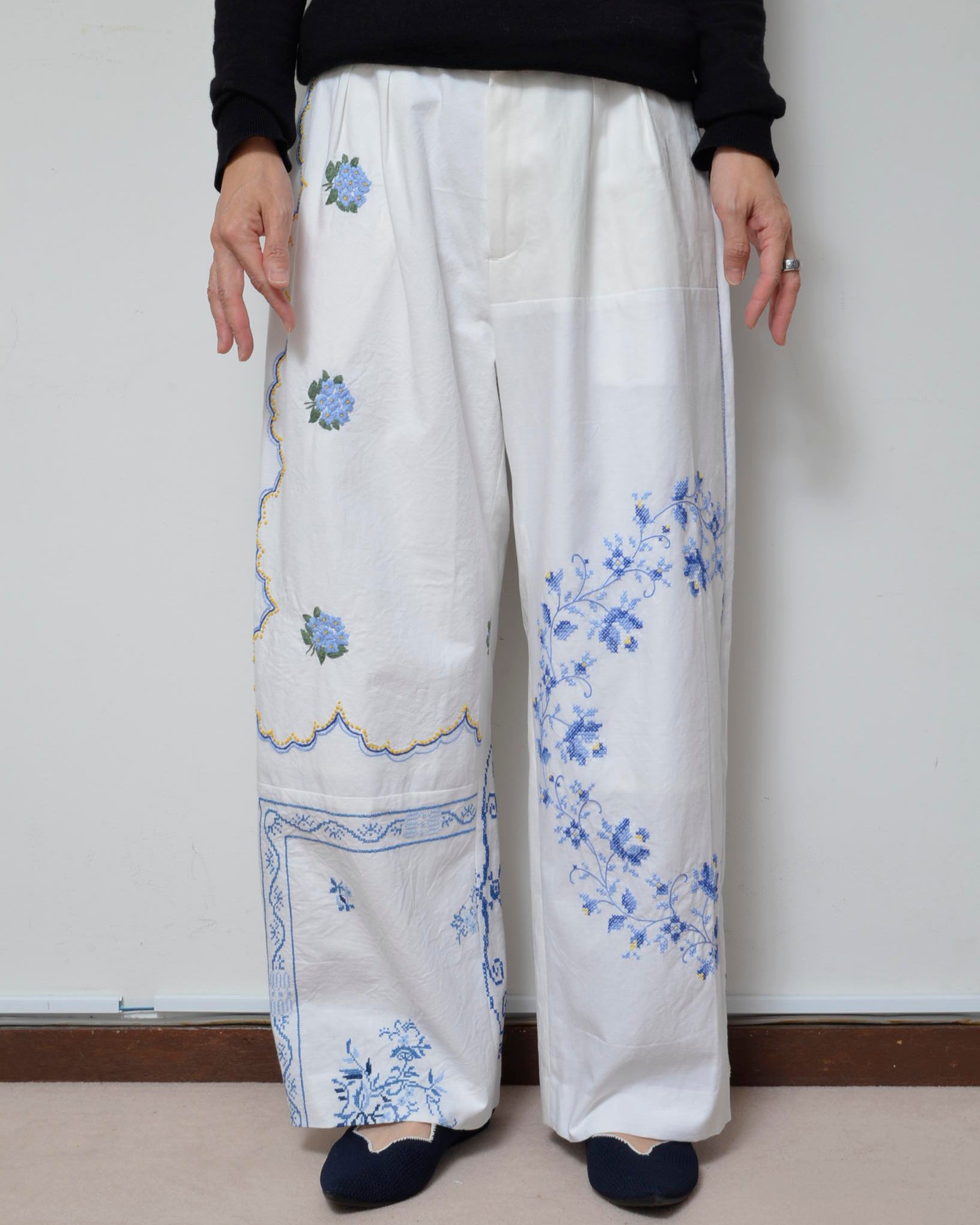 YEAH RIGHT!!定番品番のusedユーロテーブルクロスを使用したワイドストレートシルエット。