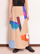 テンセルとusedスポーツブルゾンやusedバスケタンクをランダムに切り替えたアブストラクト感のあるスカート。左裾にスリット。
