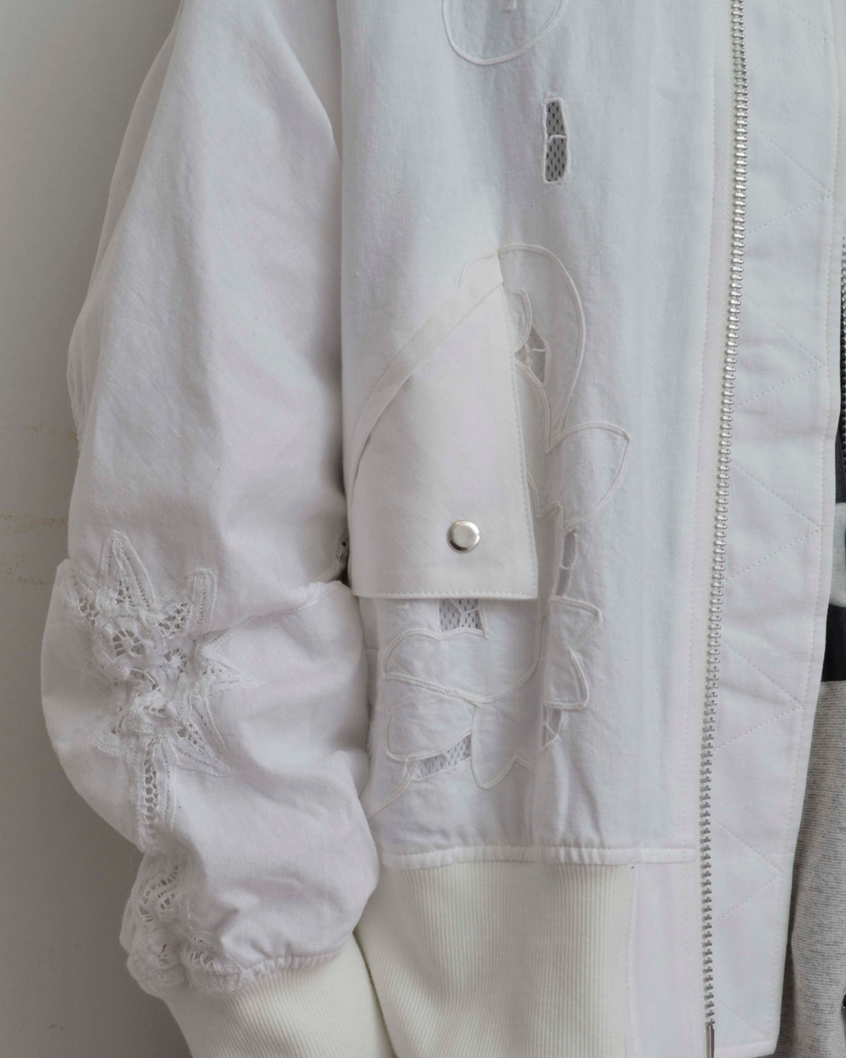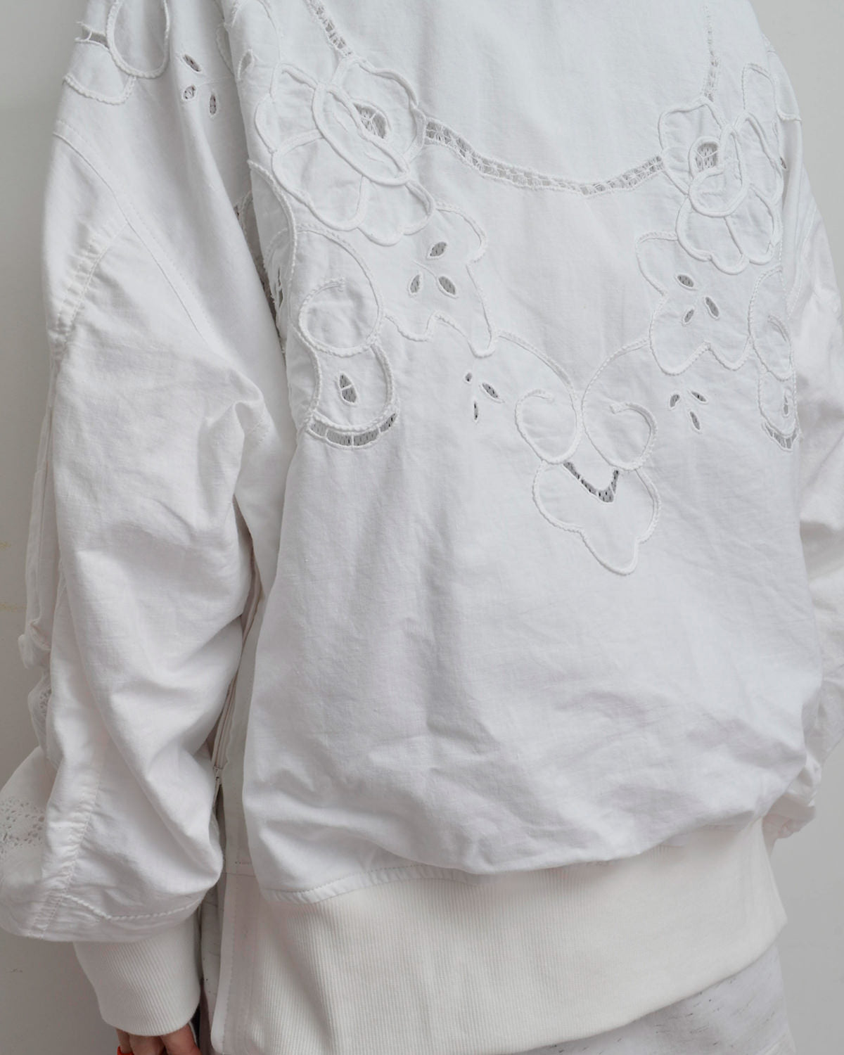 ヨーロッパ製のusedテーブルクロスを解体し、白いパーツのみで構成したMA-1。