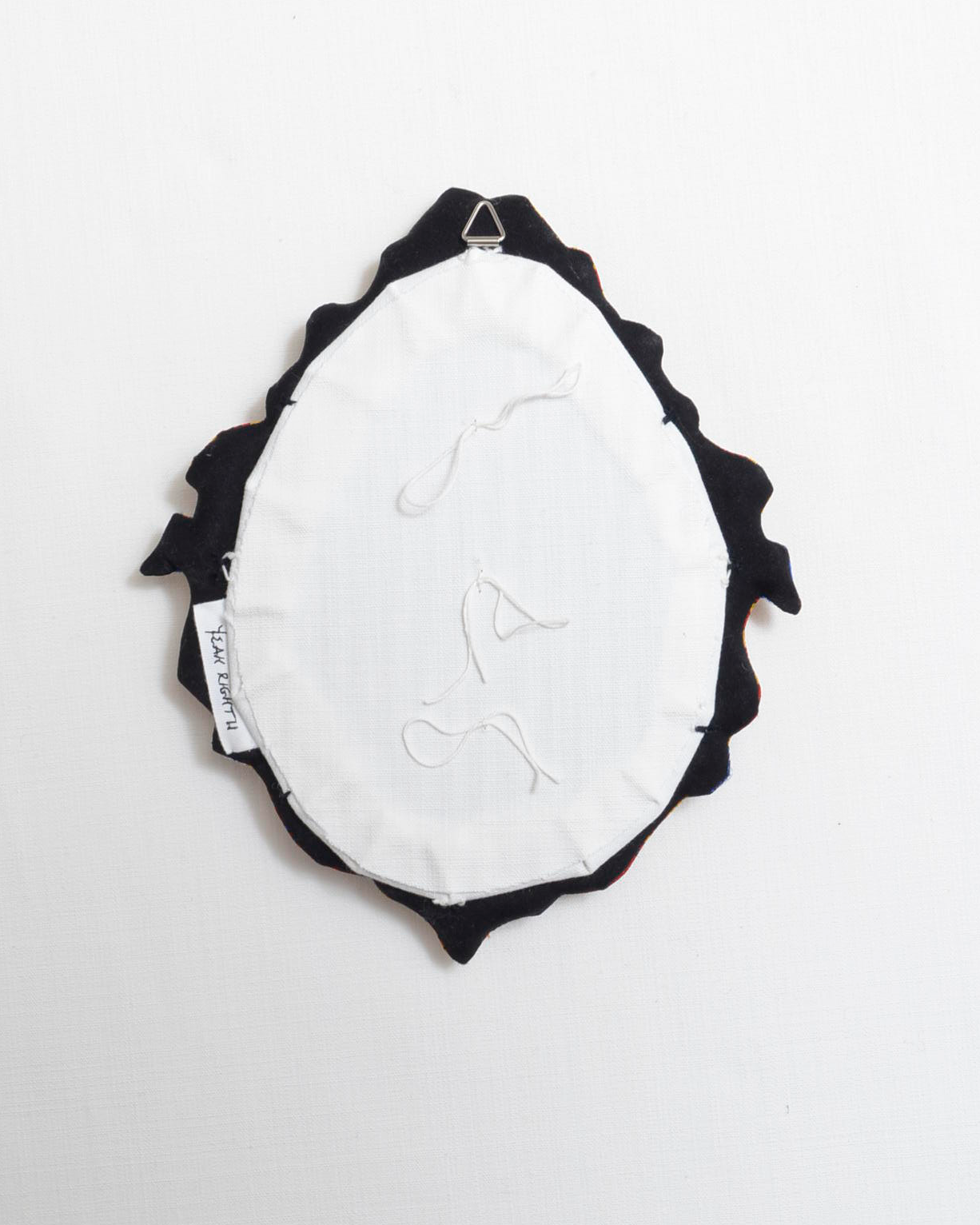 額縁や小さなモチーフとして立体化することで、布が本来持つ輪郭と記憶を新しいかたちへと再構成しています。