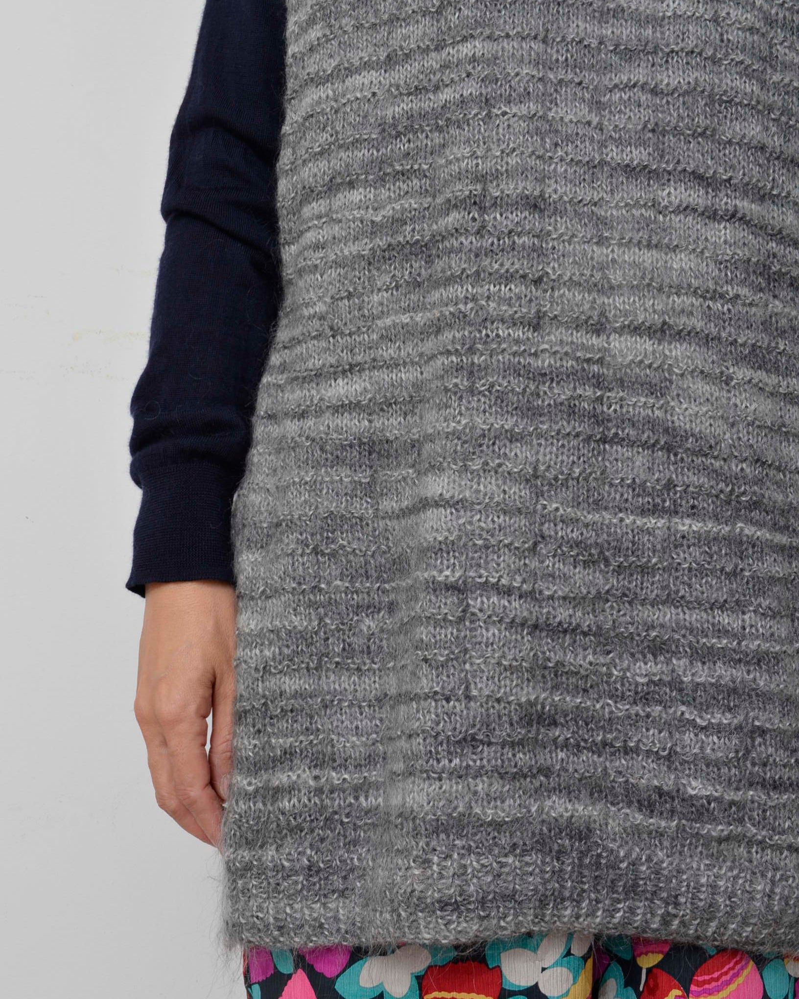ベストタイプなので、長袖のワンピースやタートルに合わせるのもいいですし、コートの中に着たときに袖がごわごわせずにすっきりします。