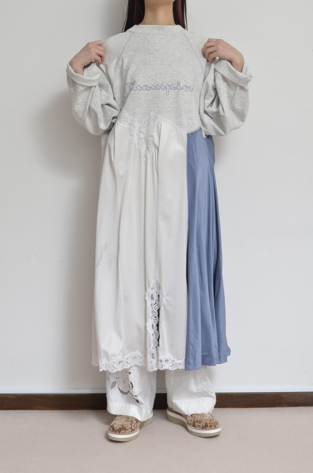 usedスウェットにスリップ2種類を組み合わせた1枚。